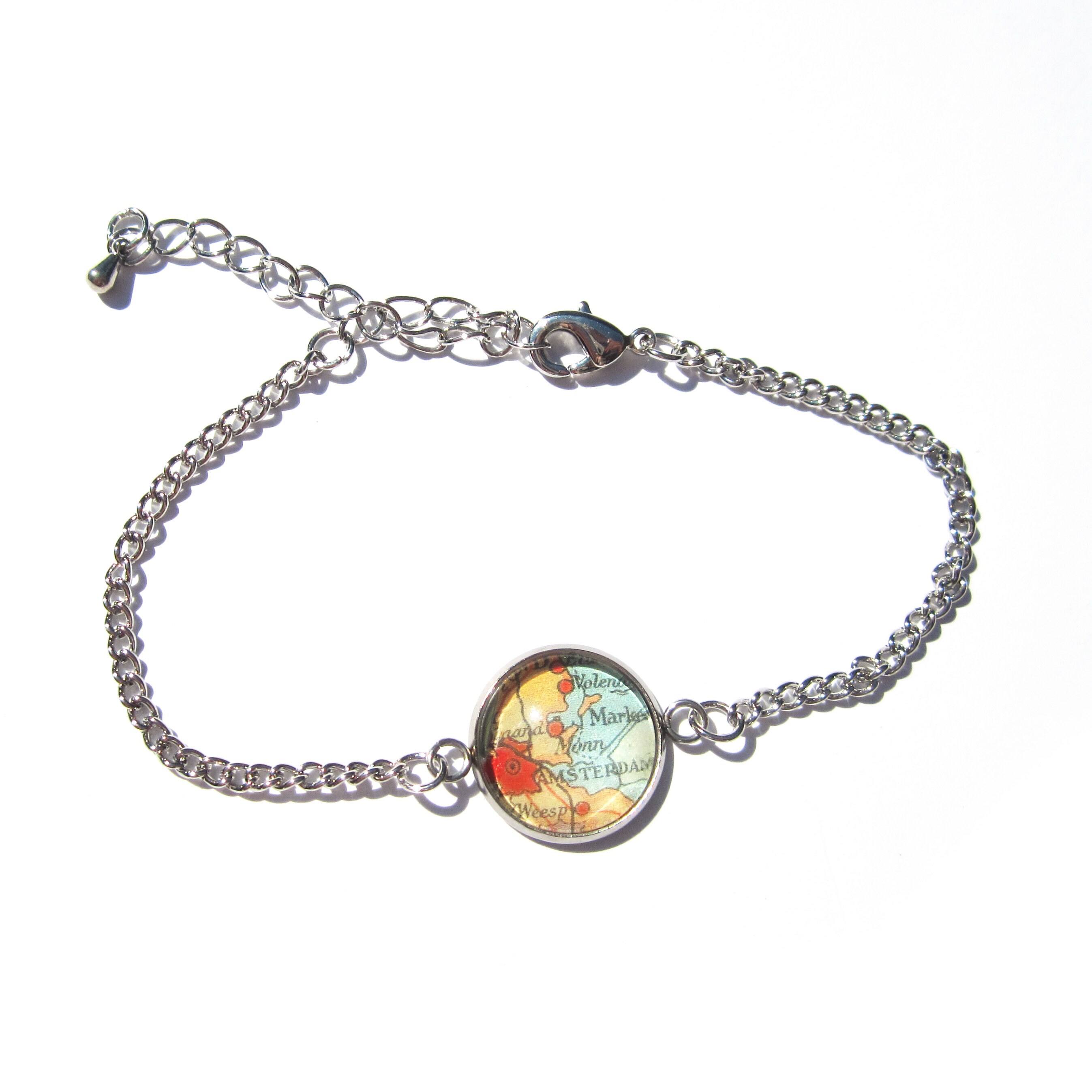 This beautiful bracelet features antiqued world map images. It is nickel and lead free, suitable for sensitive skin.